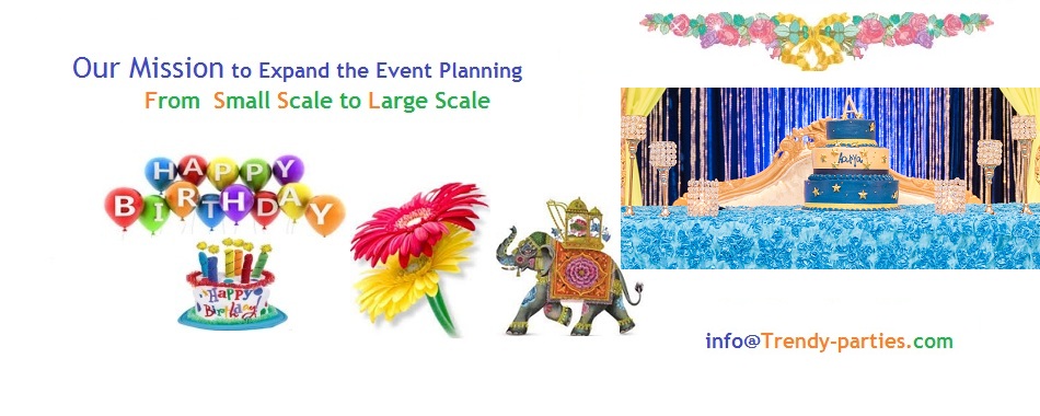 Trendy-Parties is a Modern Event Decorators, Planners, in and around Norther virginia region, You dream a Party and Event hosting is our job to make it happen.